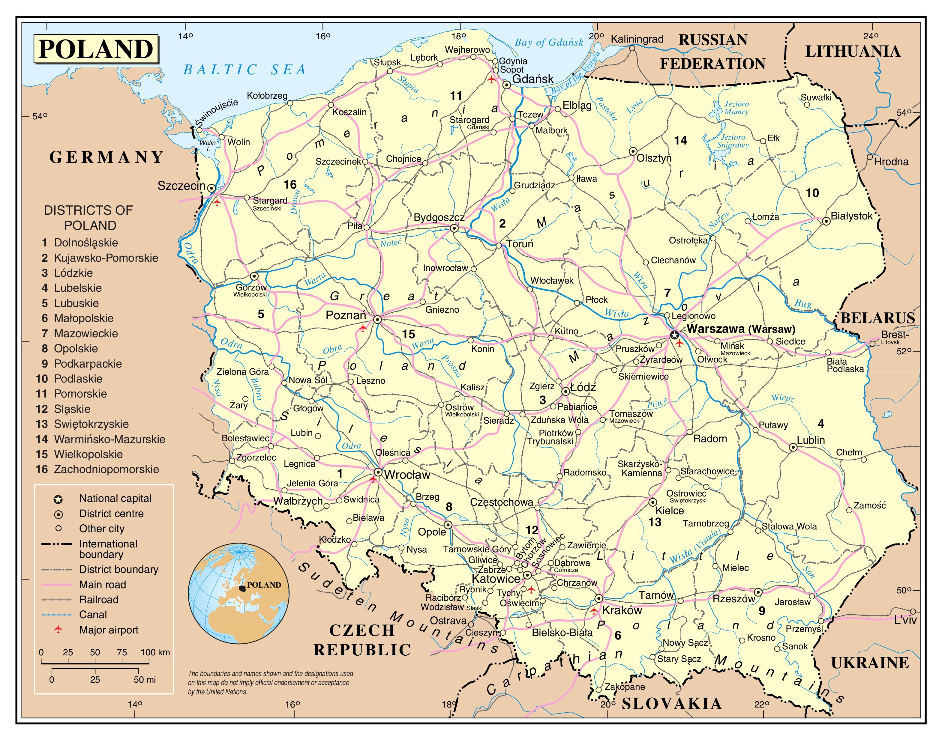 Mappa di Polonia trasporti. Polonia trasporti mappa (Europa dell'Est - Europa) per la stampa. Polonia trasporti mappa (Europa dell'Est - Europa) per scaricare. Il trasporto in Polonia coinvolge il traffico aereo, le vie navigabili, le strade e le ferrovie. Come paese situato al "crocevia" dell'Europa, la Polonia, con la sua economia sviluppata, è una nazione con una grande e sempre più moderna rete di infrastrutture di trasporto. La maggior parte delle città polacche hanno reti di trasporto pubblico ben sviluppate. A seconda della città, includono autobus, tram, filobus, treni e metropolitane come mostrato nella mappa dei trasporti della Polonia. Di solito è una buona idea comprare un biglietto a lungo termine, perché è difficile evitare il trasporto pubblico. Il trasporto urbano rappresenta la maggior parte del trasporto passeggeri in Polonia in termini di numero di passeggeri. Esiste in circa 260 città e comuni abitati da 17 milioni di persone. Le imprese di trasporto urbano trasportano circa 3,7 miliardi di passeggeri all'anno, il che rappresenta circa l'80% del numero totale di passeggeri nel settore del trasporto pubblico.
